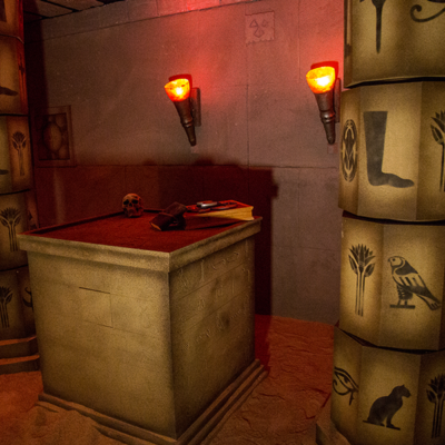 Picture this: You and your friends enter the dark tomb, with only a torch and a flickering flashlight to guide you. You have one hour to retrieve the time medallion and use it to return home before all is lost. Ancient hieroglyphics cover the walls; could they be a clue? Your team finds a strange box, but it does not easily open. Who knows what other secrets Pharaoh Khaba’s tomb holds for those brave enough to enter…