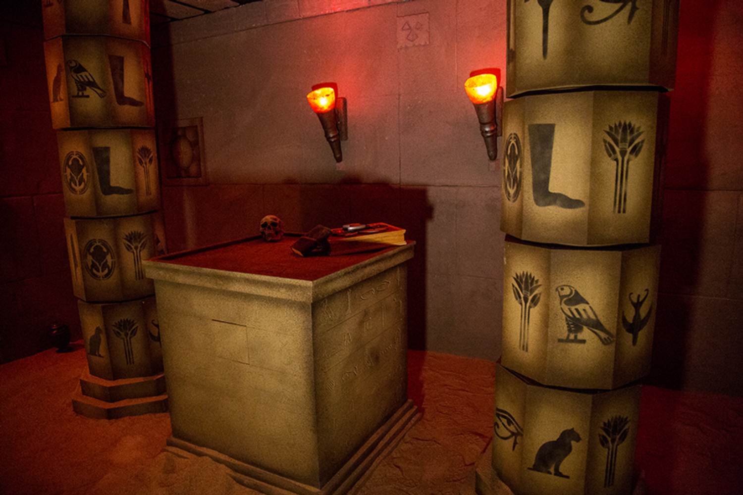 Picture this: You and your friends enter the dark tomb, with only a torch and a flickering flashlight to guide you. You have one hour to retrieve the time medallion and use it to return home before all is lost. Ancient hieroglyphics cover the walls; could they be a clue? Your team finds a strange box, but it does not easily open. Who knows what other secrets Pharaoh Khaba’s tomb holds for those brave enough to enter…